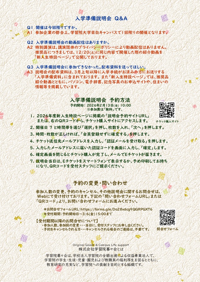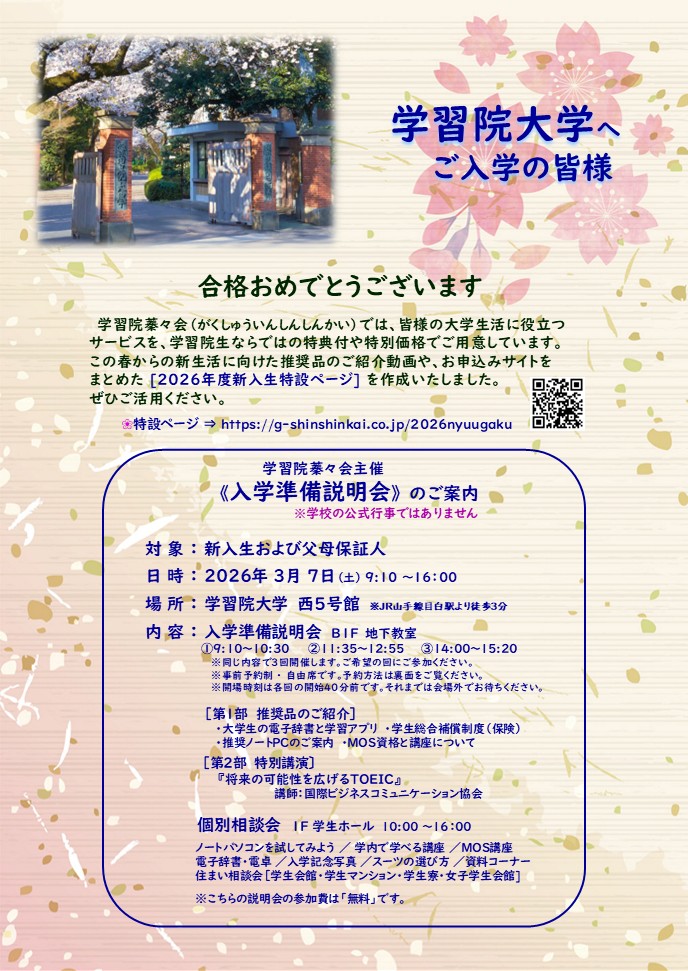 【対象】学習院大学入学予定者、父母保証人