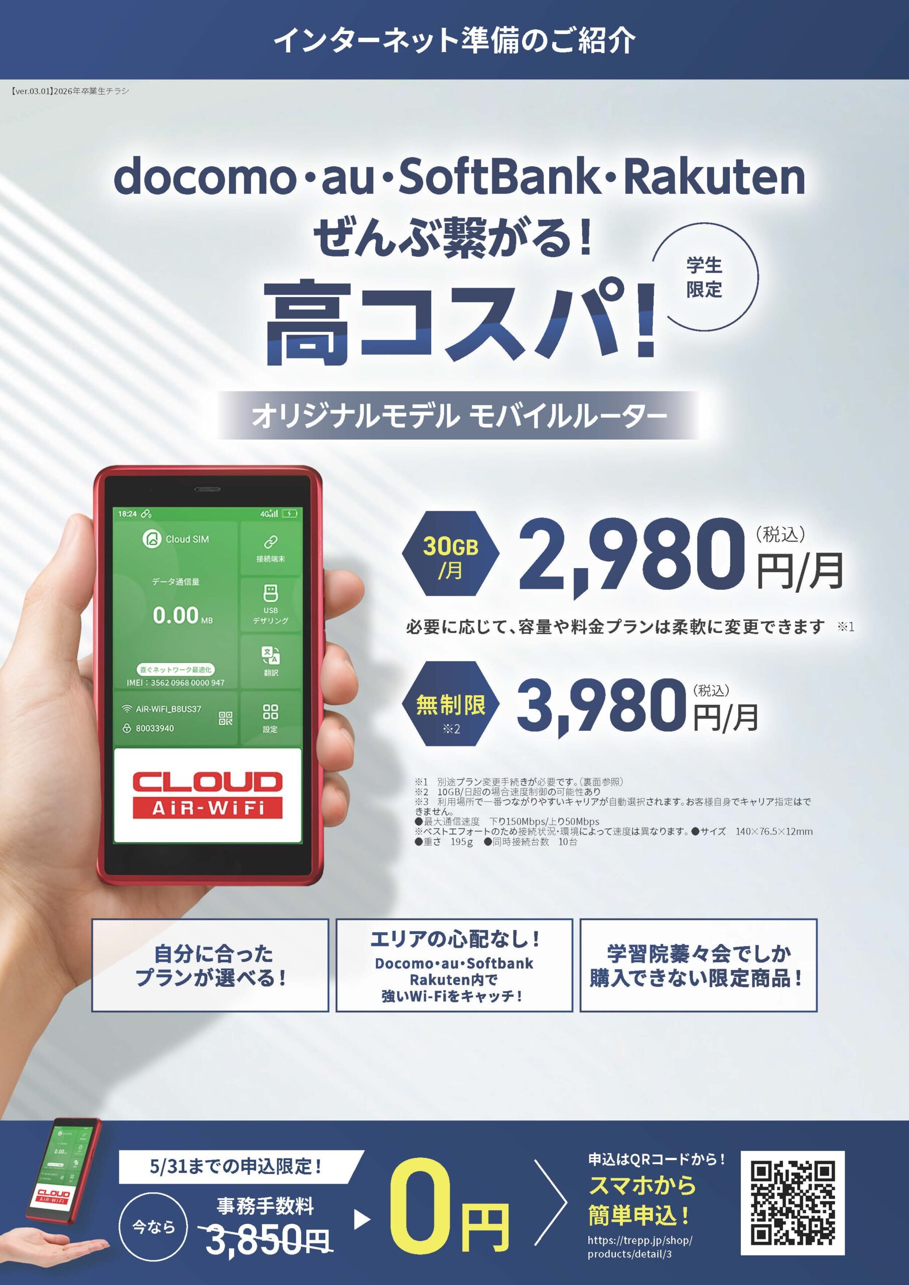 学習院蓁々会がご紹介する、通信無制限、3大キャリア利用可能、